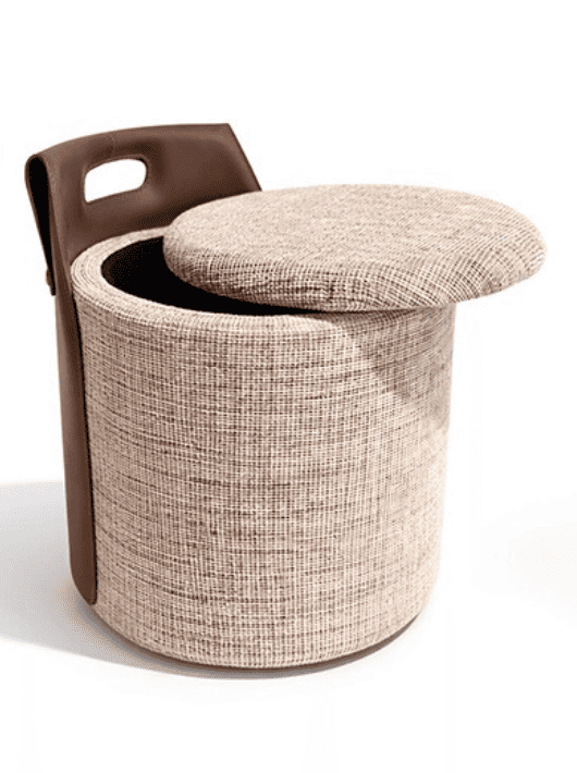 הדום הוא פתרון אחסון חכם שמשלב אסתטיקה נקייה עם פונקציונליות יומיומית, בזכות חלל פנימי המאפשר לשמור על סדר בבית מבלי להתפשר על העיצוב. כל הדום אחסון כזה מציג מראה מודרני המשלב בד טקסטיל איכותי בגוון בהיר, עם גב אחורי עשוי חומר דמוי עור בגוון חום שוקולד, וכולל ידית נשיאה מעוצבת המאפשרת להזיז אותו בקלות בין חללי הבית. עם מבנה עגול ויציב ומושב מרופד שמשמש גם כמכסה, הוא מהווה פריט משלים ורסטילי שיכול לשמש כתוספת ישיבהאו מקום אחסון לכרבוליות וצעצועים קטנים.
