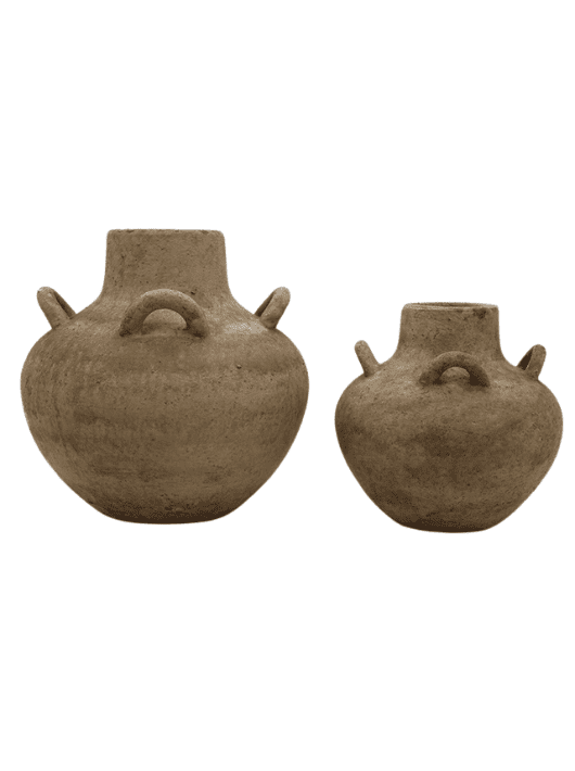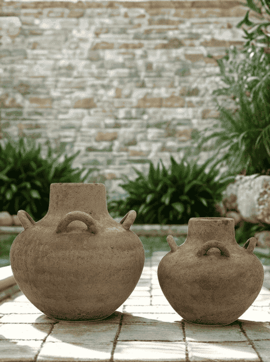 כד לעציץ בעיצוב טבעי עם נוכחות כפרית וחמימה, שמכניס לחלל תחושת אדמה, שורשיות ואותנטיות. הכד בעל צורה מעוגלת עם ידיות קטנות ודקורטיביות, בהשראת כדים מסורתיים, ומציג מראה טבעי ולא מתאמץ שמתאים לכל סגנון.