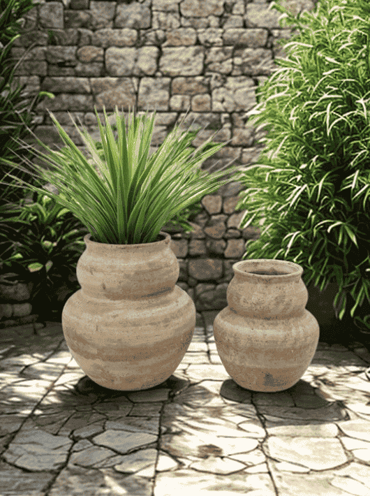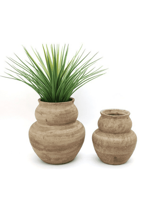 כד לעציץ בעיצוב מעוגל בגוון אבן טבעי, המעניק מראה חמים, מחוספס ועדין בו-זמנית. הצורה המעוגלת והטקסטורה המדמה אבן יוצרים תחושת חומריות טבעית שמשתלבת בצורה מושלמת בעיצוב בוהו, כפרי, ים-תיכוני או מודרני רך.