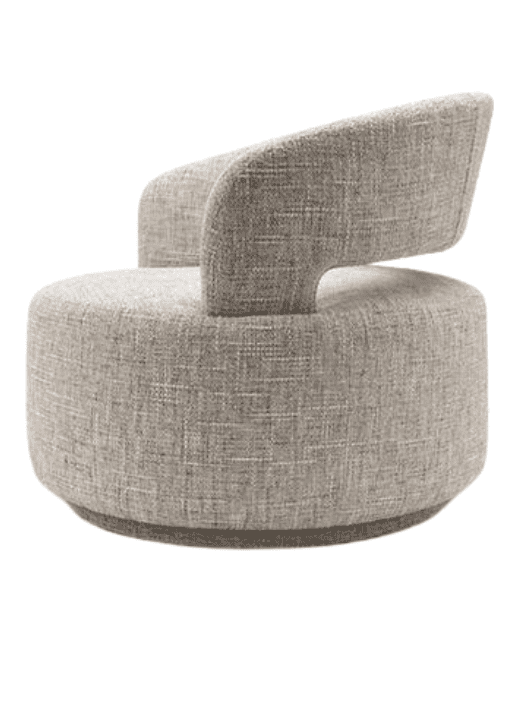 כורסא מעוצבת בקווים מעוגלים ורכים, מרופדת בד טקסטיל איכותי ונעים בגוון בז'. העיצוב הייחודי כולל משענת גב פתוחה המעניקה תחושת קלילות לצד נוחות ישיבה גבוהה. המבנה העגול והמאוזן יוצר מראה אלגנטי וחמים, המשתלב בצורה טבעית בסלון, בחדר השינה או בחלל אירוח מודרני. כורסא זו משלבת בין פונקציונליות לנוכחות עיצובית, ומהווה פריט מרכזי שמוסיף אופי וסטייל לכל חלל.