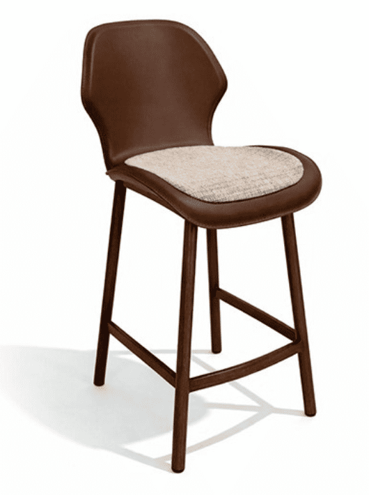 כיסא בר דמוי עור המשלב מעטפת חיצונית יוקרתית בגוון שוקולד מבד דמוי עור HP איכותי עם מרכז מושב מרופד בבד טקסטיל בגוון בהיר. הכיסא בנוי על שלדת מתכת חזקה ויציבה הכוללת מדרך רגליים נוח, ומשלב משענת גב ארגונומית מעוגלת לתמיכה מקסימלית בישיבה גבוהה. בזכות הגימור האיכותי והחומרים הקלים לניקוי, הוא מהווה פתרון אידיאלי ומלא בסטייל עבור אי המטבח או דלפקים גבוהים.