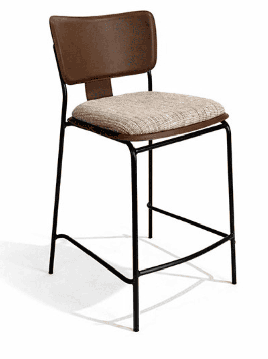 הכניסו אווירה של בר מעוצב ויוקרתי למטבח שלכם עם כיסא בר דמוי עור וטקסטיל מדגם מיקס חום. הכיסא מציג שילוב חומרים נעים ונקי, המעניק מראה מודרני ותעשייתי שמתאים בצורה מושלמת לאיים ומטבחים עכשוויים.