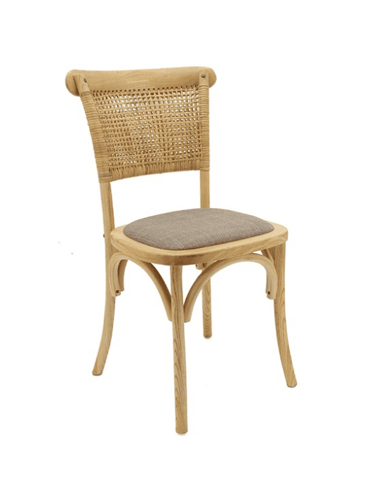 כיסא אוכל מעוצב המשלב שלד עץ טבעי עם גב ראטן קלוע ומושב מרופד לנוחות יומיומית. העיצוב הקלאסי עם קווים מעוגלים מעניק מראה אלגנטי וחמים, המשתלב בקלות בפינת אוכל, במטבח או סביב שולחן אירוח. הכיסא משלב בין נוחות, יציבות ואסתטיקה טבעית, ומתאים לחללים בסגנון כפרי, בוהו או קלאסי מודרני.