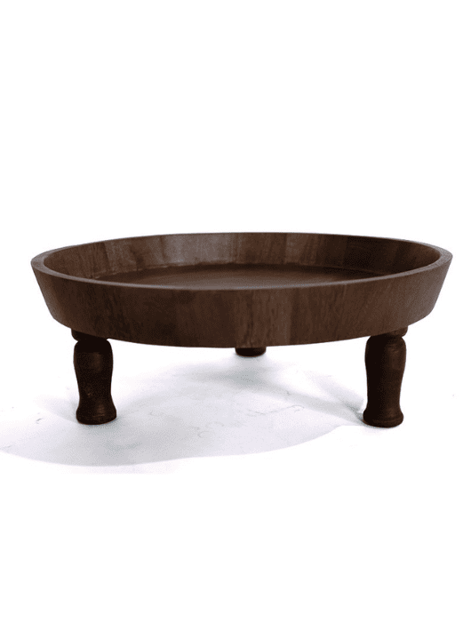מחפשים פריט שיעניק גובה ונוכחות לשולחן האוכל שלכם? מגש עגול גדול על רגליים הוא הפתרון המדויק. המגש עשוי מעץ מנגו איכותי בגוון אגוז, המשלב מראה כפרי וחם עם עיצוב מודרני ונקי. בזכות הרגליים המעוצבות, הוא משמש כאלמנט תצוגה מרשים המאפשר להגביה פריטי נוי או הגשה ויוצר עניין ויזואלי בכל חלל.