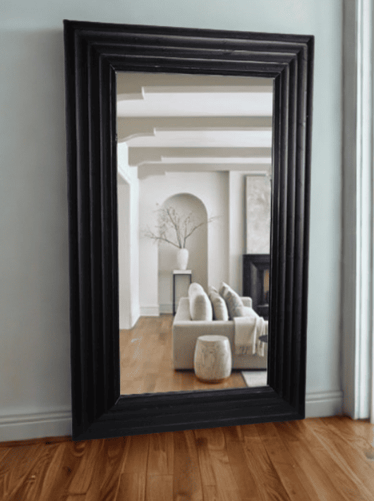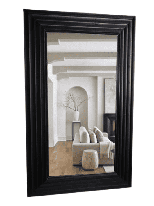 מראה גדולה בעיצוב אלגנטי ובעל נוכחות, עשויה עץ בגוון שחור מהמם המשדר עומק ויוקרה. המסגרת הרחבה בעיצוב מדורג כלפי חוץ מוסיפה תחושת עומק ועוצמה ויזואלית, ומעניקה למראה מראה ייחודי המתאים לכל חלל מעוצב – סלון, חדר שינה או מבואה. השילוב בין הגוון השחור הקלאסי לעץ הטבעי יוצר מראה עשיר שמתאים הן לעיצוב מודרני והן לחללים בעלי אופי כפרי או תעשייתי. ניתן לתלות אותה על הקיר או להעמיד על הרצפה להשלמת מראה יוקרתי ומאוזן.