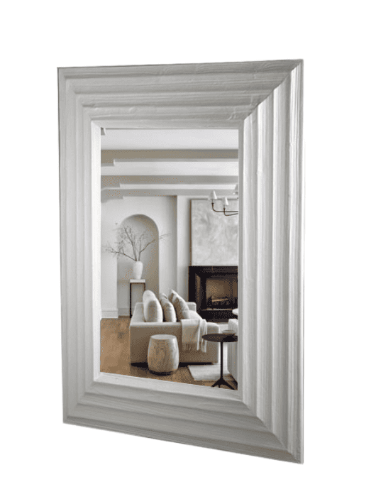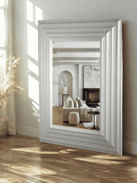 מראה מעוצבת בעלת נוכחות מרשימה, עם מסגרת עץ רחבה בגוון לבן שמעניקה תחושת עומק ואלגנטיות לכל חלל. העיצוב המלבני הקלאסי משתלב בקלות עם מגוון סגנונות, ומוסיף אור ותחושת מרחב בכל חדר.