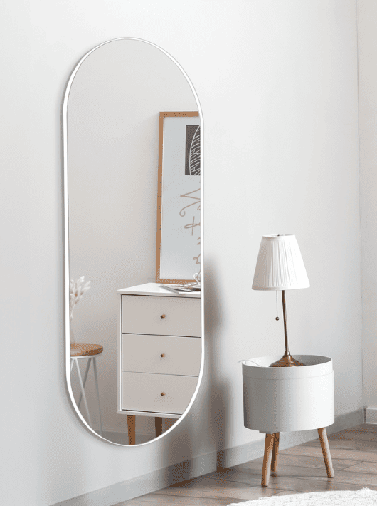 מראה מעוצבת בצורת קפסולה אלגנטית בעיצוב צר ומאורך, בגוון לבן נקי שמוסיף תחושת רוגע ומינימליזם לכל חלל. צורתה המעוגלת בקצוות מעניקה מראה רך ומודרני, ההופך אותה לפריט עיצובי בפני עצמו – אידיאלית לחדר שינה, למסדרון או לסלון. המסגרת הלבנה הדקה משתלבת בקלות עם כל סגנון עיצוב, החל מעיצוב סקנדינבי ועד מראה מודרני-מונוכרומטי. בזכות האפשרות לתלייה בשני כיוונים (אנכי או אופקי) ניתן להתאים את המראה לחלל באופן מושלם.