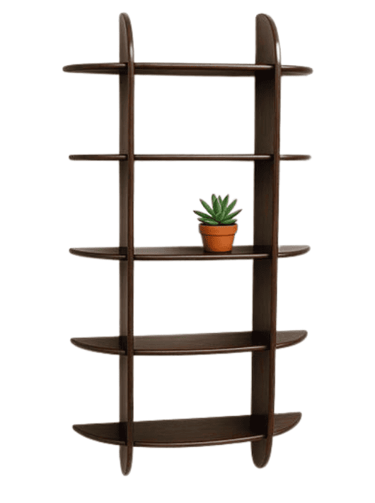 סט מדפים צר ומעוצב מעץ מנגו מלא בגוון אגוז עמוק, שמוסיף לחלל נוכחות חמה ואלגנטית. המבנה האנכי והדק מאפשר להציב אותו גם במקומות צרים, תוך שמירה על מראה עשיר שמקפיץ את העיצוב של כל קיר. המשטחים המעוגלים מדגישים את הטקסטורה המלאה של העץ ויוצרים תחושה יוקרתית וטבעית. המדפים הרחבים מאפשרים להציג ספרים, צמחים, נרות ופריטי דקור שונים בצורה אסתטית ומאורגנת, תוך ניצול מיטבי של חללים צרים כמו מסדרונות, כניסות ופינות שקשה לעצב.