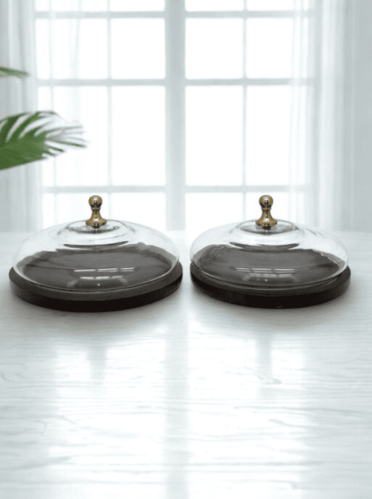 סט אלגנטי של 2 צלחות הגשה מעץ בגוון אגוז עם מכסה זכוכית – שילוב מושלם של פונקציונליות ועיצוב חמים. הבסיס עשוי עץ בגוון אגוז עשיר שנותן למוצר נוכחות יוקרתית על כל שולחן, בעוד שמכסה הזכוכית מאפשר לראות את המאפים, העוגות או הגבינות שמוגשים – תוך שמירה על טריות והיגיינה. הידית העליונה בגוון זהב מוסיפה טאץ' אלגנטי ומאפשרת פתיחה נוחה.