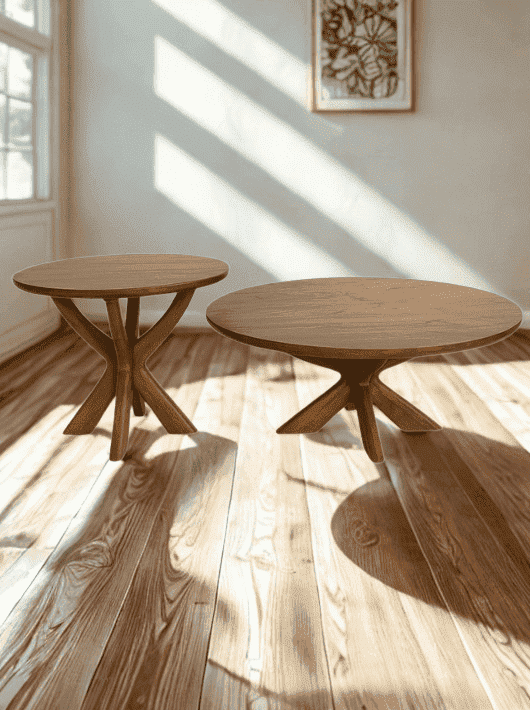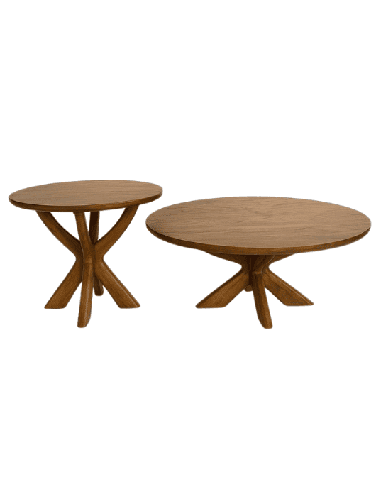 סט של שני שולחנות סלון בעיצוב עגול וחם, שמכניס לחלל תחושת טבע ורוגע. גוון הדבש של העץ מעניק מראה בהיר, נקי ומזמין, כזה שמעשיר את הסלון בלי להשתלט עליו. השילוב בין המשטחים העגולים לרגלי ה־X המעוצבות יוצר פרופיל מרשים שמתאים לכל סגנון עיצובי. עם שני גבהים שונים, הסט מעניק גמישות בעיצוב, מאפשר הנחה שכבתית של השולחנות ושומר על מראה מאורגן ומדויק.
