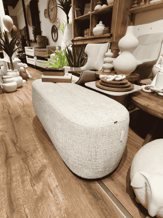 ספסל לחדר שינה שהוא פריט חובה למי שרוצה להכניס אור ותחושת מרחב לחדר. העיצוב המעוגל והנקי משתלב נהדר עם ריפוד טקסטיל איכותי בגוון קרם מהמם, שמוסיף עומק ועניין. זהו רהיט פונקציונלי שמשדר יוקרה שקטה, ומתאים באופן מושלם כסיומת מעוצבת למיטה או כפינת ישיבה קלילה ומזמינה.