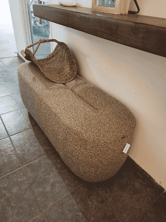 ספסל מעוצב המתאפיין בקווים מעוגלים ובמראה נקי, עם בד טקסטיל בטקסטורה עשירה המשלבת גווני טבע כמו בז' וחום. זהו פריט ורסטילי שמשלים את החלל מבלי להעמיס עליו, ומעניק פתרון ישיבה רך ונעים לחדר השינה או לכניסה לבית.