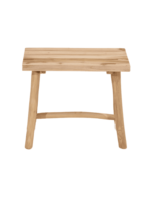 ספסל עץ לבית בעיצוב נקי וטבעי, עשוי עץ טיק ממוחזר בגוון בהיר וחמים. המבנה הפשוט עם הרגליים הנטויות מעניק מראה טבעי ואותנטי, המשתלב בקלות בחללים שונים בבית – מבואת כניסה, חדר שינה, סלון או פינת ישיבה קטנה.