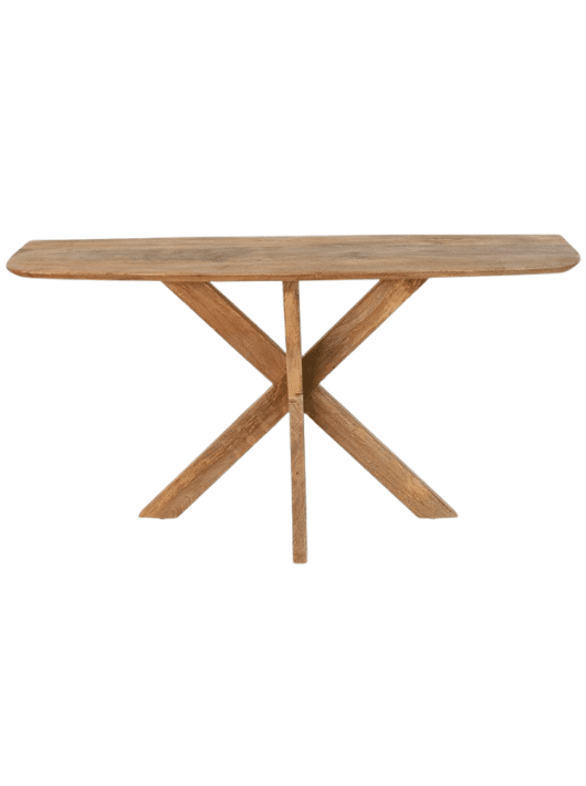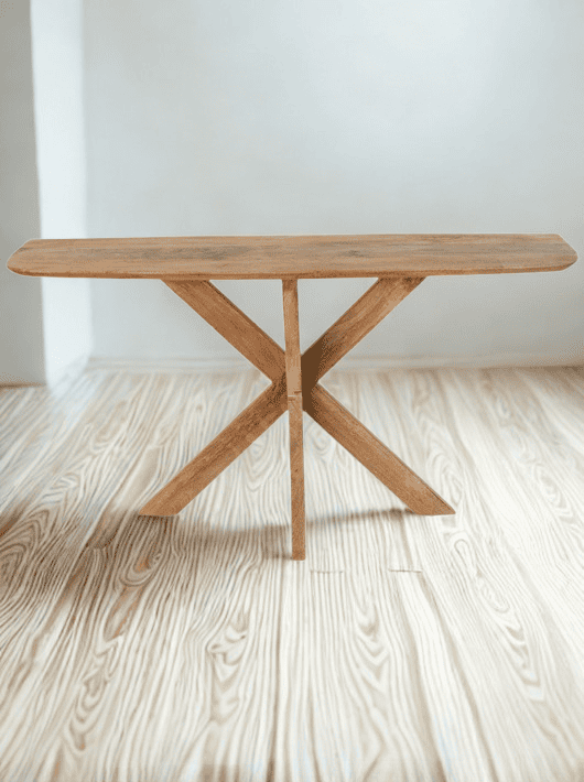 קונסולה לכניסה מעץ מנגו מלא שמוסיפה חום טבעי ונוכחות נקייה כבר מהרגע הראשון שנכנסים לבית. העיצוב מבוסס על רגלי X יציבות שמעניקות למראה הכולל טאץ כפרי מודרני ומשטח עליון רחב שמאפשר להניח עליו עציצים, נרות, קערת, מפתחות או כל פריט דקורטיבי אחר. הגוון הטבעי של עץ המנגו מדגיש את הטקסטורה הייחודית של העץ ומוסיף תחושת חמימות ואופי לחלל. הקונסולה מתאימה במיוחד לכניסה לבית ומצליחה לשלב בין מראה פשוט ונקי לבין עיצוב בעל אופי.