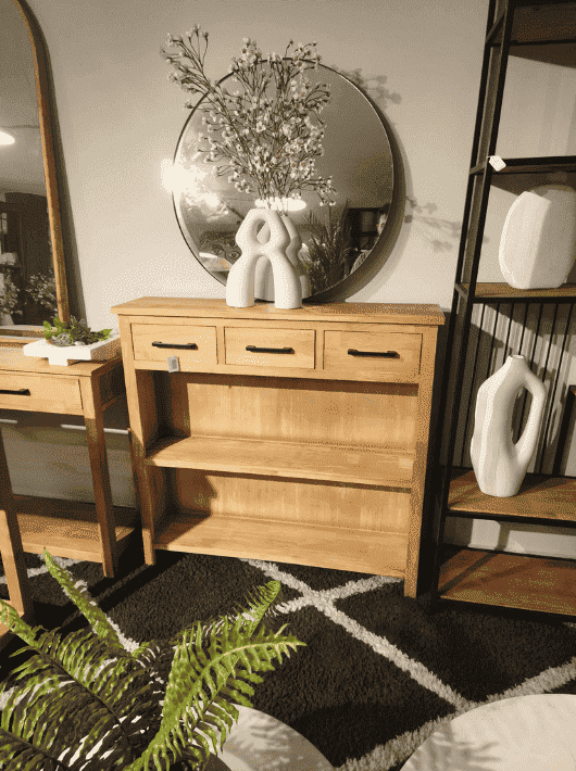 קונסולה צרה עם 3 מגירות ומדף פתוח