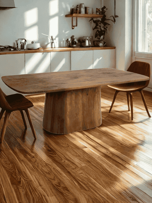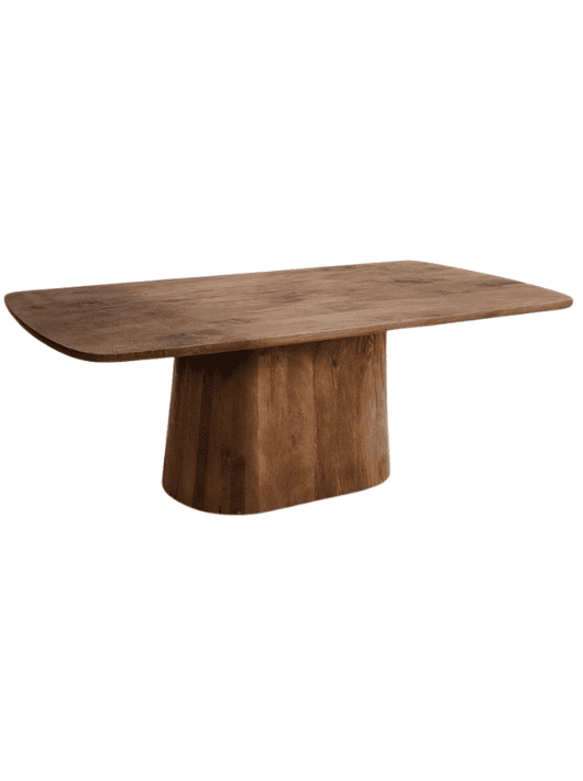 שולחן פינת אוכל גדול בעיצוב טבעי ועשיר מעץ מנגו מלא, שמעניק לחלל תחושת חום ואופי אמיתי. השילוב בין הפלטה הרחבה בקצוות מעוגלים לבין בסיס העץ הגדול והמעוצב יוצר מראה יציב, יוקרתי וייחודי שמושך מיד את העין. גוון הדבש מדגיש את טקסטורת העץ ומביא איתו עיצוב חם, מזמין וביתי, כזה שמתאים לאירוח, לארוחות משפחתיות ולחללים המעוצבים בסגנון מודרני, בוהו או טבעי. זהו שולחן שמכניס לחלל נוכחות ברמה גבוהה ומשמש כפריט מרכזי בבית.