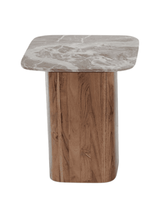 שולחן צד מרובע עם קצוות מעוגלים שמוסיף לחלל בדיוק את מה שחסר לו: מגע של אלגנטיות מודרנית, חום טבעי ונוכחות מרשימה. משטח השולחן עשוי שיש טבעי עם טקסטורה מעודנת, ורגל עבה מעץ בגוון טבעי שמשלבת יציבות עם מראה מרשים ומעודן.