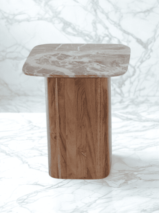 שולחן צד מעוצב עם פינות מעוגלות ומשטח שיש