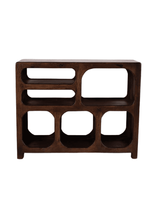 שידה לסלון בעיצוב בוהו טבעי ובעל אופי, המשמשת כבסיס אידיאלי לטלוויזיה או כפריט עיצוב עצמאי המעשיר את מראה החלל. השידה משלבת מבנה ייחודי עם תאים פתוחים בצורות ובגדלים א-סימטריים, היוצרים מראה אמנותי, טבעי וזורם. בזכות החומריות העשירה והגוון הכהה, היא מוסיפה עומק ואלגנטיות לכל סלון.